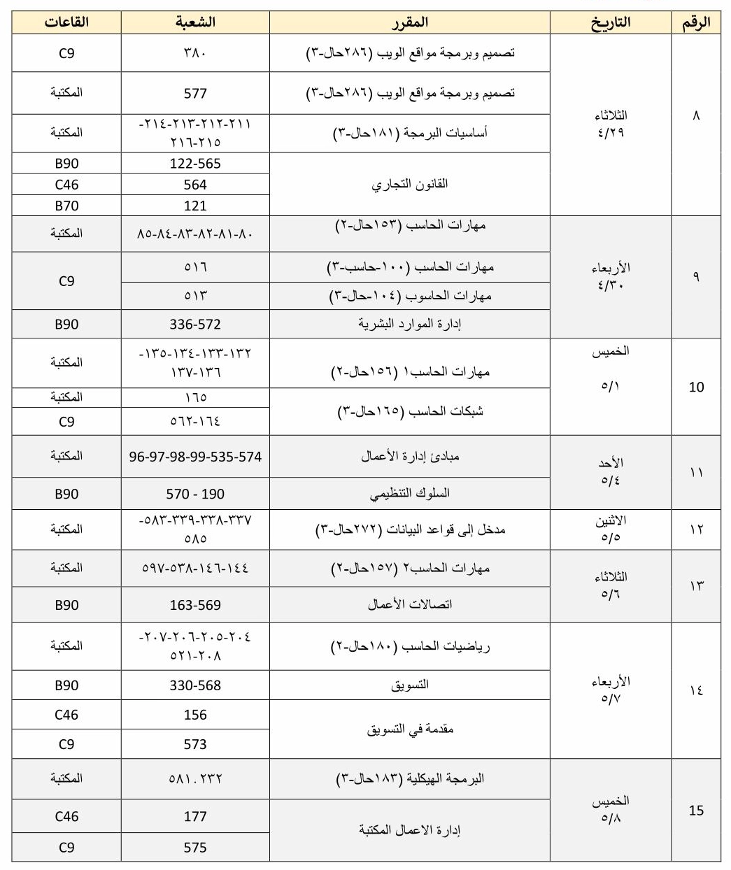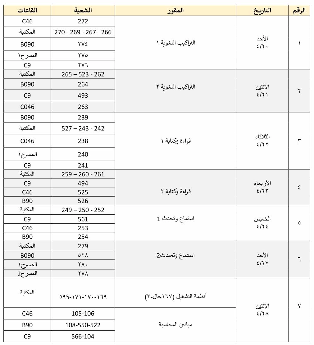 null جدول الاختبارات الفصلية للمقررات المشتركة في الكلية التطبيقية - المقر الرئيسي - الفصل الدراسي الأول 1447