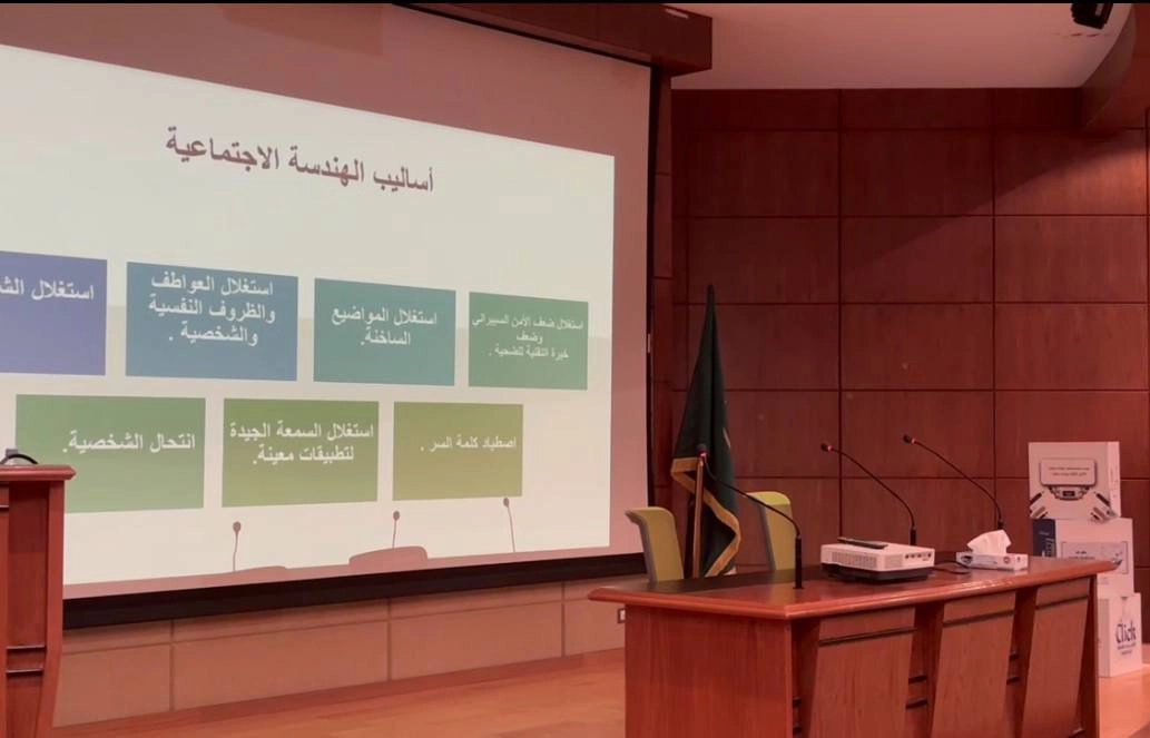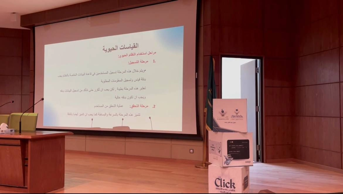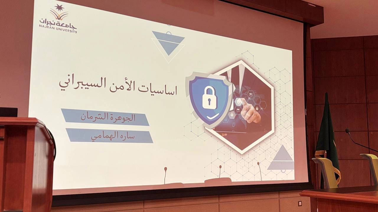 Click Club at the Applied College – Female Branch – held a training course titled "Fundamentals of Cybersecurity" for female students on Thursday, 15 Jumada Al-Awwal 1447 AH, corresponding to November 6, 2025, at the college auditorium in Building 28. The course was presented by Johara Al-Sharman and Sara Al-Hamami, as part of the club’s programs aiming to raise technical awareness and promote digital protection culture among students.