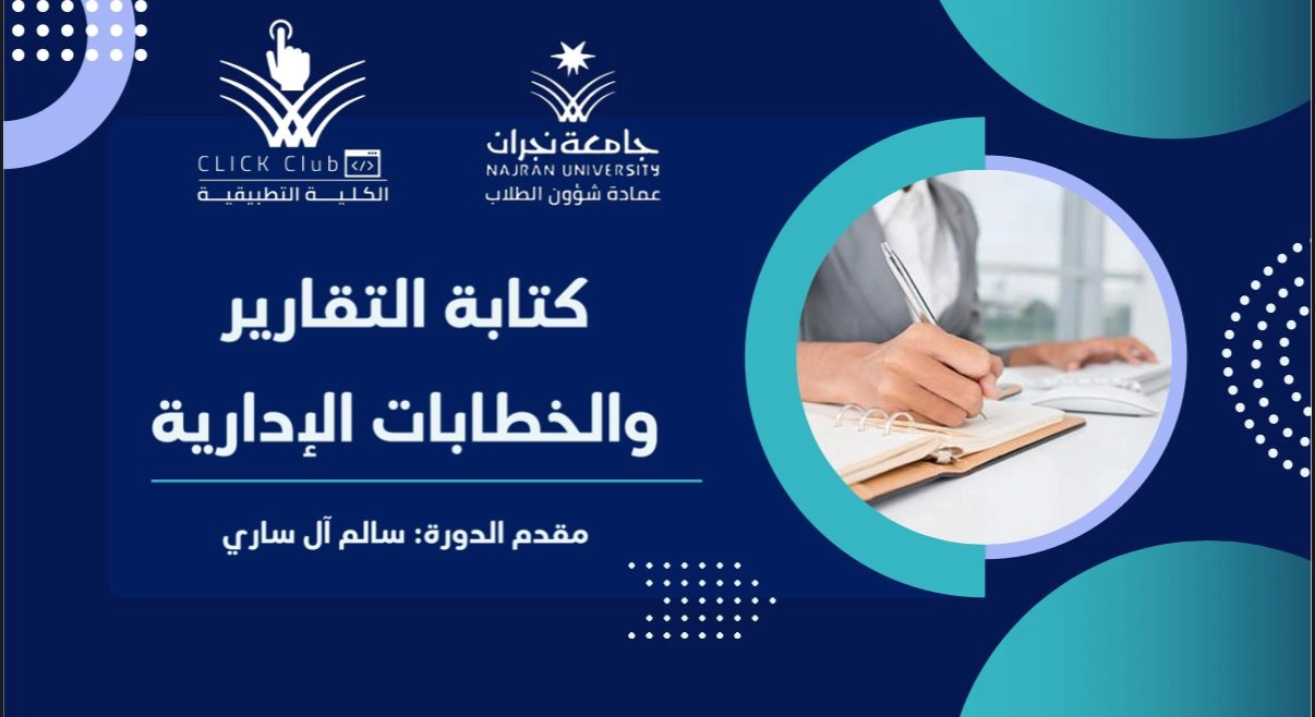 Click Club at the Applied College organizes a training course titled "Writing Reports and Administrative Letters" – First Semester, 1447