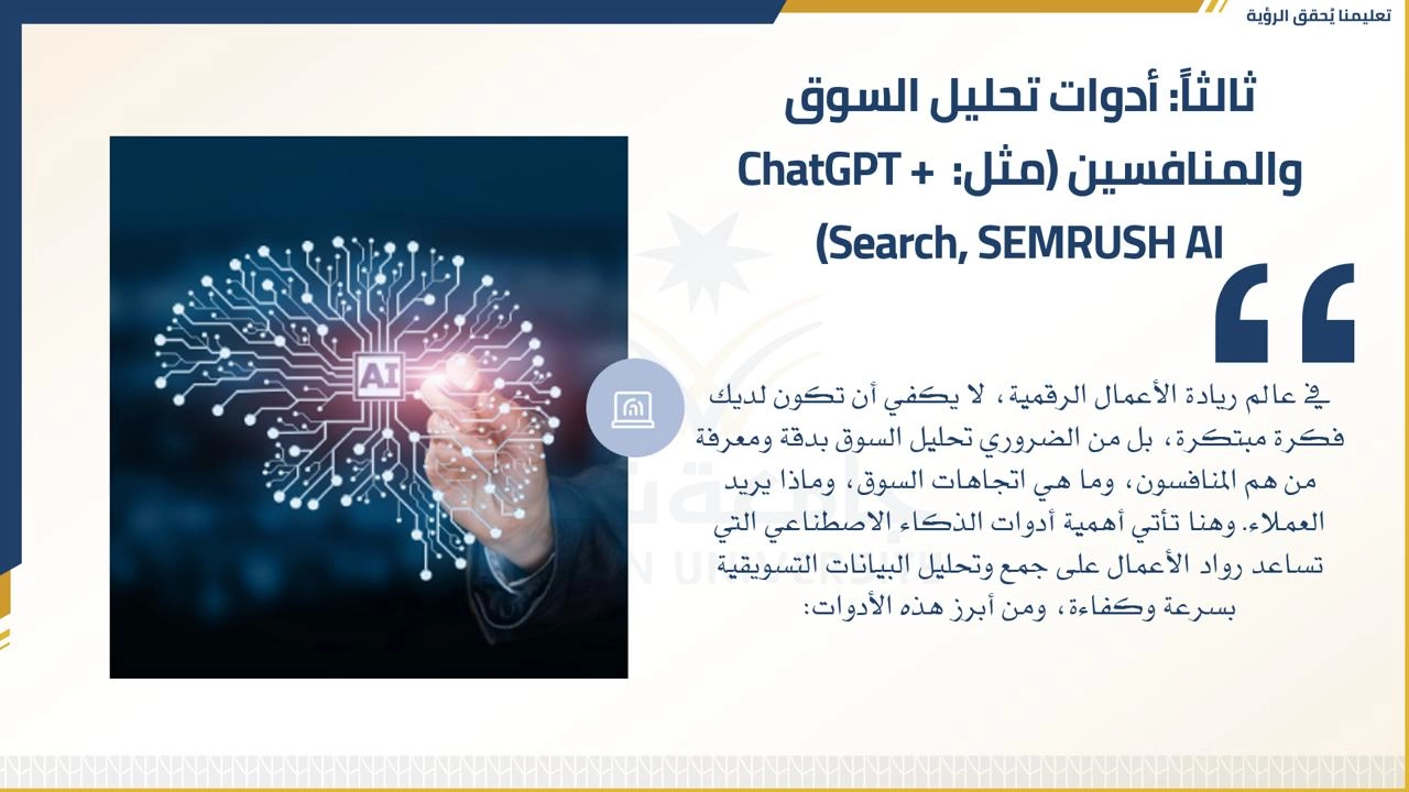 The Applied College, represented by the Training and Skills Development Unit (Training Courses Committee), and in cooperation with the Community Responsibility Department at Najran University, organized a community training course titled "Artificial Intelligence and Entrepreneurship – Tools to Help You Start Your Project" – First Semester, 1447