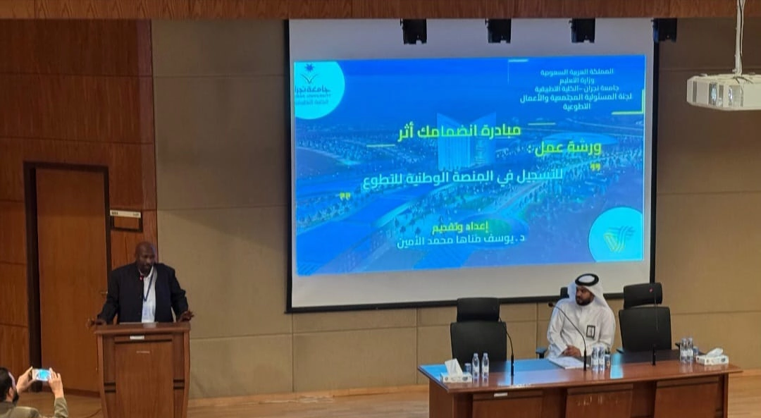 The session concluded with an interactive discussion in which Dr. Youssef Manaha Al-Ameen and Engineer Musfer Al-Najrani, Assistant Executive President of the Applied College for Support Services, responded to students’ questions and emphasized the importance of volunteer work and humanitarian initiatives in serving the community.