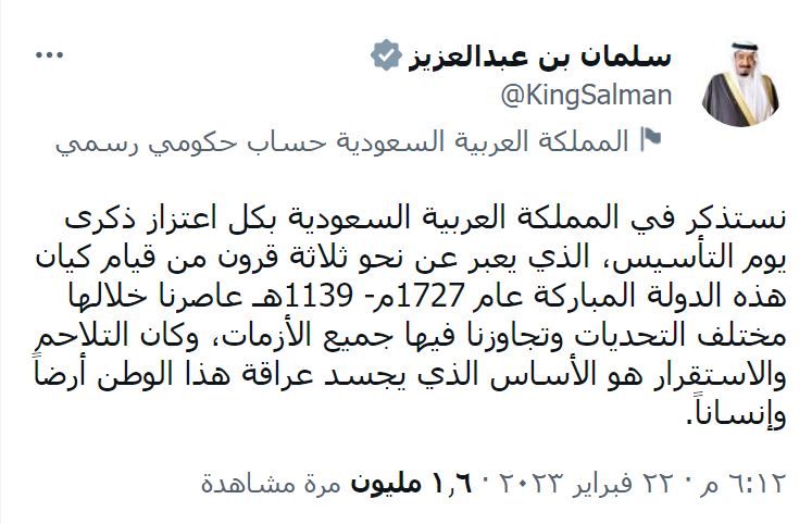 الاعتزاز باستمرار الدولة السعودية واستعادتها لقوة جذورها وقادتها