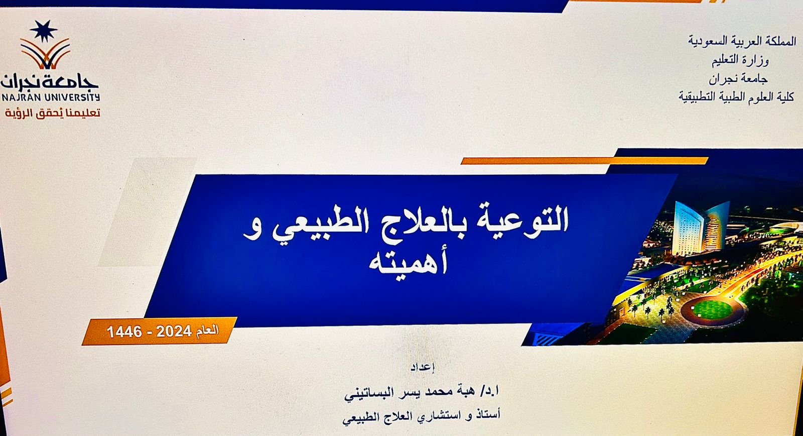 لجنة الأنشطة الطلابية في الكلية التطبيقية - فرع الطالبات - بالتعاون مع كلية العلوم الطبية التطبيقية تنظم محاضرة توعوية بعنوان "العلاج الطبيعي وأهميته" - الفصل الدراسي الأول 1446