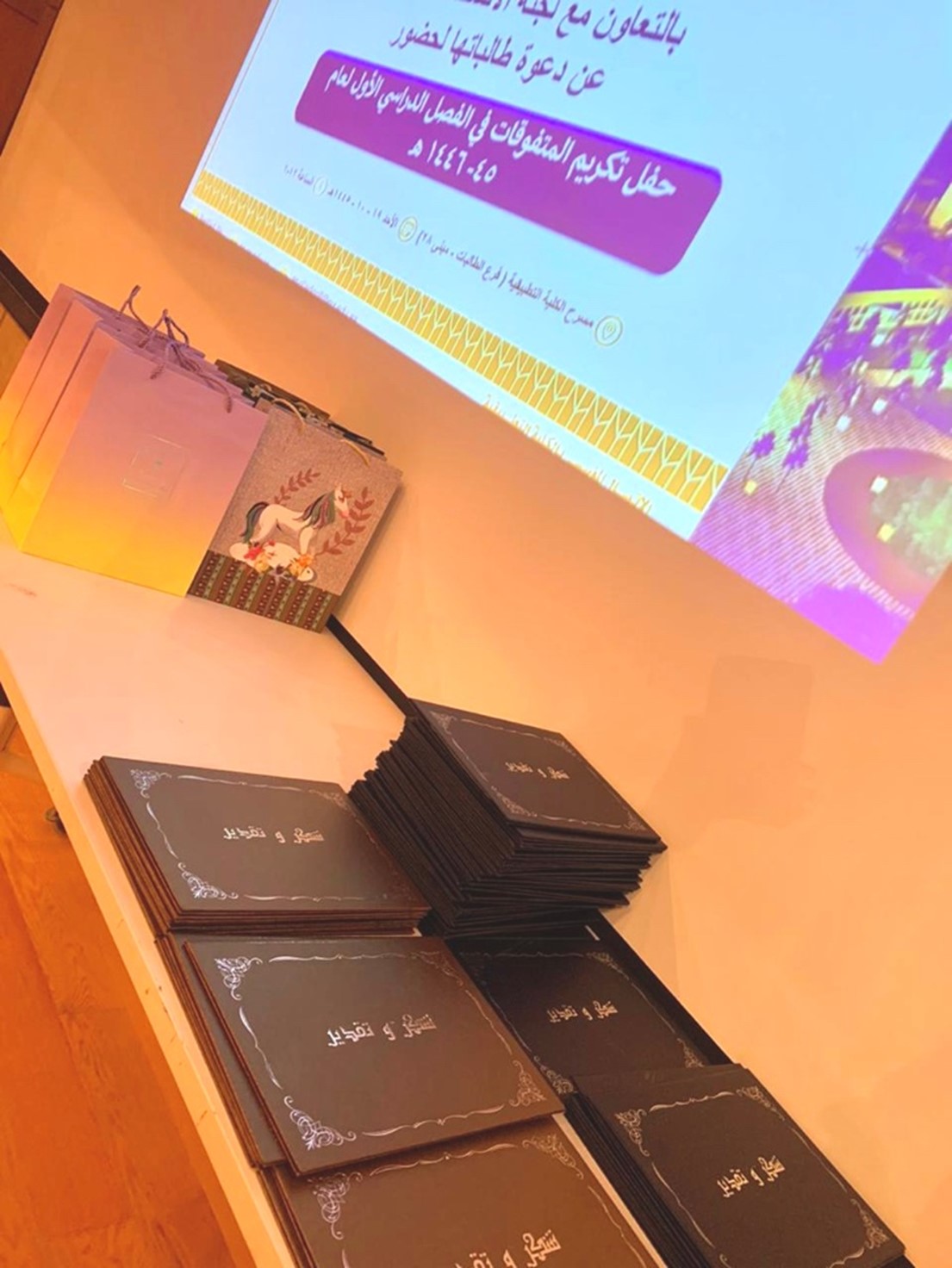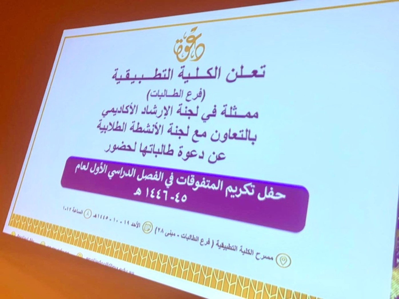 لجنة الارشاد الأكاديمي بالتعاون مع لجنة الأنشطة الطلابية في الكلية التطبيقية – فرع الطالبات – تنظم حفل تكريم الطالبات المتفوقات في الفصل الدراسي الأول 1445