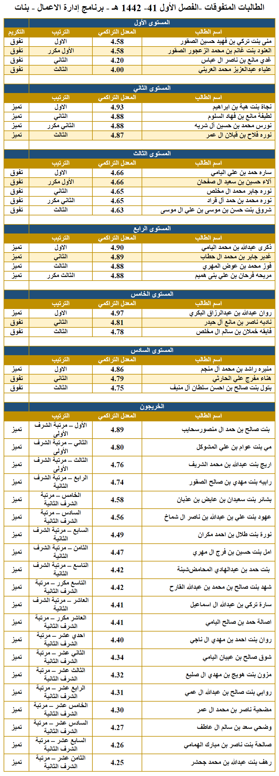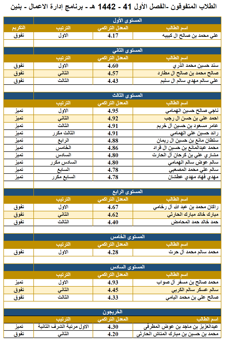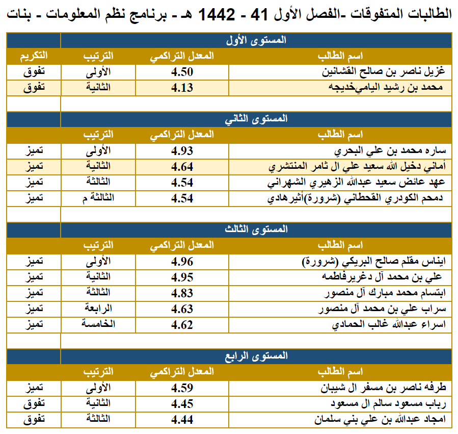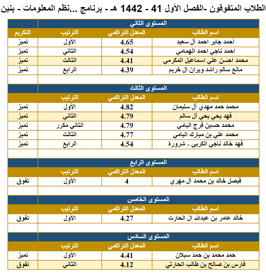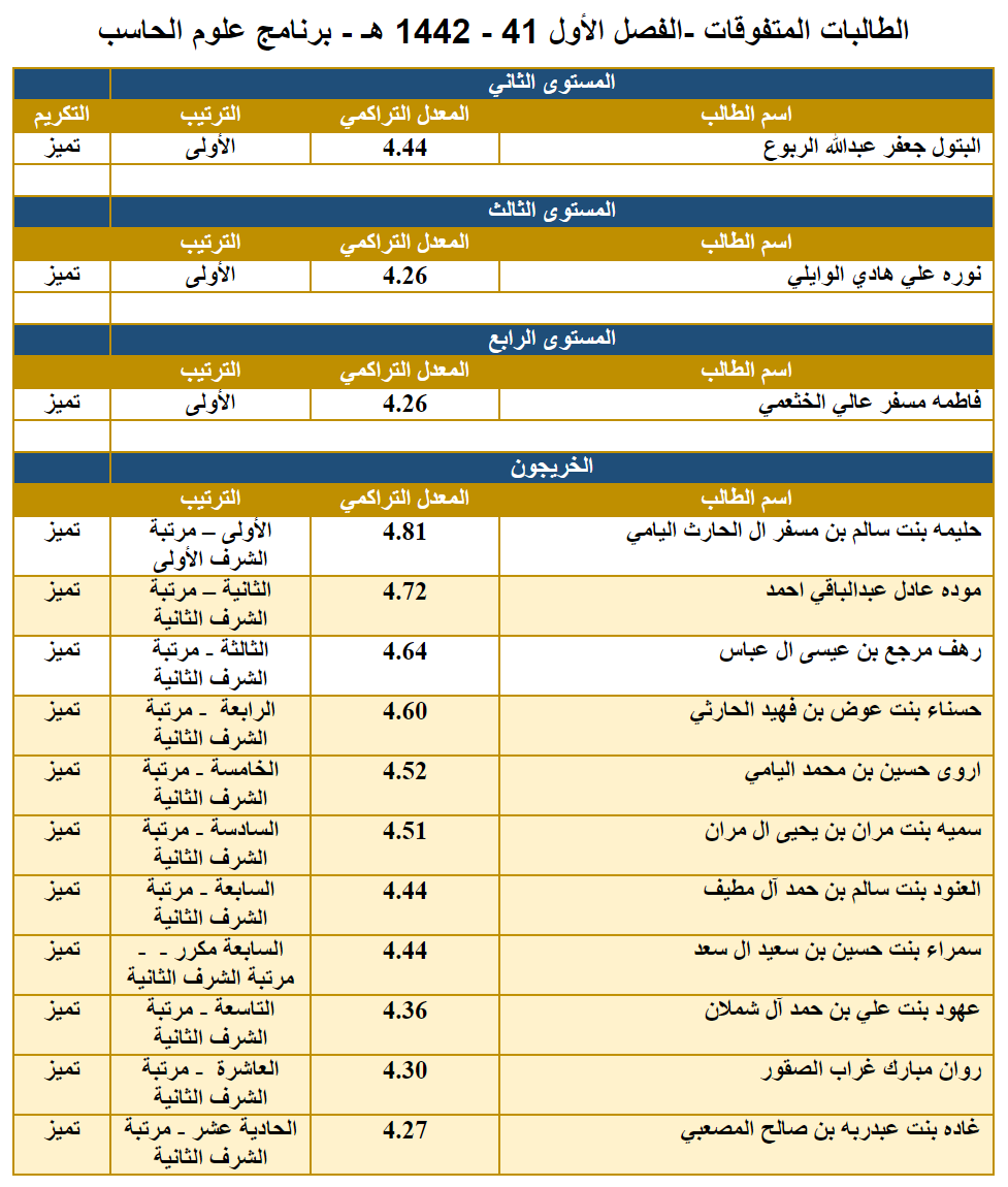 تكريم الطلاب المتميزين واوائل المتفوقين وخريجي مرتبة الشرف في الفصل الدراسي الأول للعام الجامعي 41 – 1442